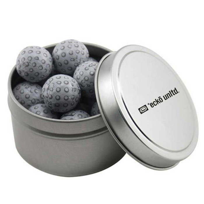 Custom Round Tins with Chocolate Golf Balls