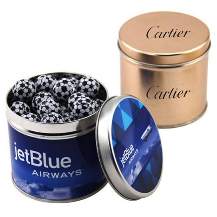 Custom Round Tins with Chocolate Soccer Balls