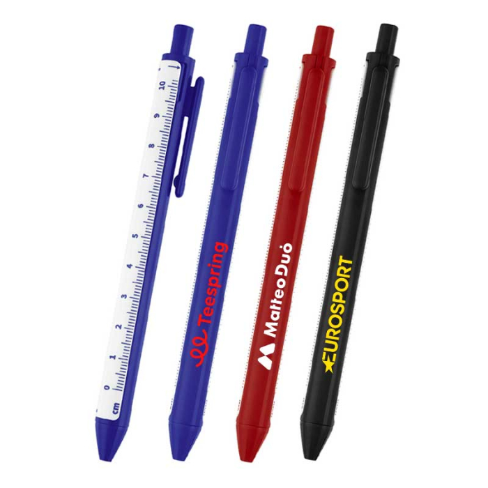 Custom Straight Line Pens with 4 Inch Ruler combine the practicality of a pen with the utility of a measuring tool. The plunger-action pen provides smooth writing, while the removable 4-inch ruler snaps securely onto the barrel for quick measuring and drawing straight lines. Lightweight and compact, this versatile tool is ideal for office, school, or home use, and its snap-on/snap-off feature makes it convenient to carry or store. Perfect for promotional giveaways, corporate gifts, or personal use, this pen offers functionality and practicality in one sleek, user-friendly design that recipients will find useful again and again.Looking for more? Explore our collection of plastic pens right away.Get free design, free online proofs and fastest turnaround offers.