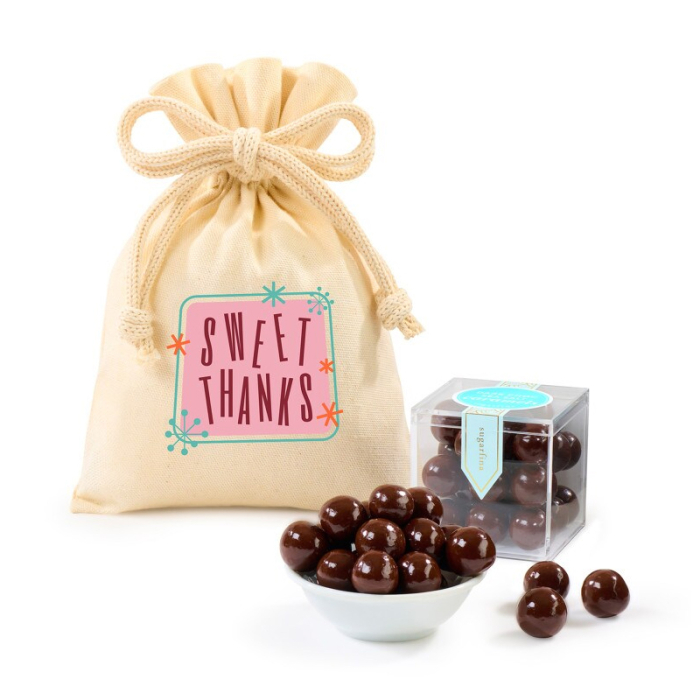 Delight recipients with the Custom Sugarfina Sea Salt Caramels Candy Cube Gift Bag, a chic and indulgent treat perfect for corporate gifting, welcome kits, or special celebrations. Each gift features Sugarfina’s signature Sea Salt Caramels, elegantly presented in their iconic Candy Cube packaging and housed in a reusable canvas gift bag for stylish, eco-conscious presentation. Known for transforming candy into a playful yet luxurious experience, Sugarfina—a women-owned brand—ensures these treats are kosher, free from artificial flavors, and crafted in the USA. Give the gift as is for a sweet moment of indulgence or pair it with a keepsake, such as drinkware, a journal with pen, or a pouch, for an extra-special, memorable gift experience.Looking for more? Explore our collection of food and candy gift bags right away.Get free design, free online proofs and fastest turnaround offers.