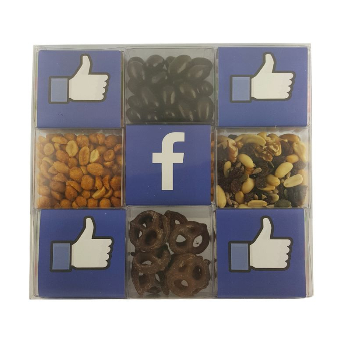Custom Supreme Treat Boxes with Savory Mix are designed to impress from the first glance to the last bite. Packed with a crave-worthy selection of snacks, this box includes milk chocolate covered pretzels (1.7 oz.), dark chocolate covered pretzels (1.7 oz.), trail mix (3.2 oz.), milk chocolate covered raisins (5.3 oz.), deluxe mixed nuts (3.6 oz.), French burnt peanuts, dark chocolate almonds (4.4 oz.), honey roasted peanuts (3.5 oz.), and caramel duds (5 oz.). The spacious 10 1/4" W x 9 3/4" H x 1 3/8" D box offers ample room to showcase your logo, making it a smart, shareable way to keep your brand top of mind in offices, meetings, and celebrations.Looking for more? Explore our collection of food & candy gift boxes right away.Get free design, free online proofs and fastest turnaround offers.