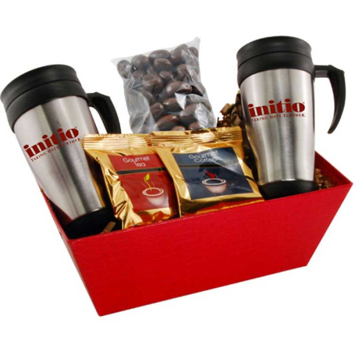 Custom Trays with Mugs and Chocolate Covered Almonds