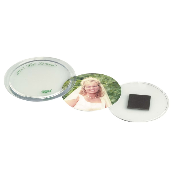 Customized 2 1/4 Inch Snap-In Magnetic Discs are ideal for photography studios, cosmetic companies, and promotional campaigns. Each disc features a 2 1/4" insert for a favorite photo or artwork and a convenient magnetic backing to attach to refrigerators, lockers, or metal displays. Made in the USA, these discs ensure quality and durability. With your logo printed on the bottom, they serve as a personal yet professional marketing giveaway. Hand out these eye-catching discs at trade shows, events, or client meetings to boost engagement and brand awareness with a memorable keepsake.Looking for more? Explore our collection of magnetic clips right away.Get free design, free online proofs and fastest turnaround offers.