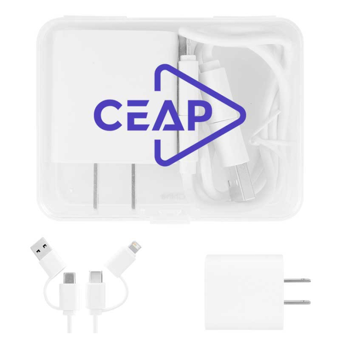 Customized 20W Adapter and Cable Sets provide a powerful, travel-ready charging solution for today’s multi-device users. The UL Listed wall adapter delivers 20W Power Delivery through a Type-C output with A/C input, ensuring fast and efficient charging at home, in the office, or on the go. Paired with a 60W fast charging cable, this set supports Apple® 8-Pin, Micro-USB, and Type-C outputs with a Type-C input, allowing users to charge and transfer data across multiple devices using one convenient accessory. A protective plastic travel case keeps components organized and secure during transport. Ideal for corporate gifts, tech promotions, trade shows, and employee kits, this dependable charging set keeps your brand powered and visible wherever connectivity matters most.Looking for more? Explore our collection of charging cables right away.Get free design, free online proofs and fastest turnaround offers.