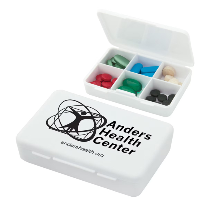 Customized 6 Compartment Pillboxes are designed to help users manage their medications with ease and accuracy. Featuring six clearly divided sections, this pillbox makes it simple to organize daily doses and quickly find the right pill at the right time. Its durable construction keeps medications secure and protected, giving users peace of mind whether at home or on the go. Compact and practical, it fits easily into bags, drawers, or countertops. Ideal for pharmacies, clinics, hospitals, and wellness programs, this pillbox offers everyday usefulness while keeping your brand visible through regular, repeated use.Looking for more? Explore our collection of pill boxes right away.Get free design, free online proofs and fastest turnaround offers.