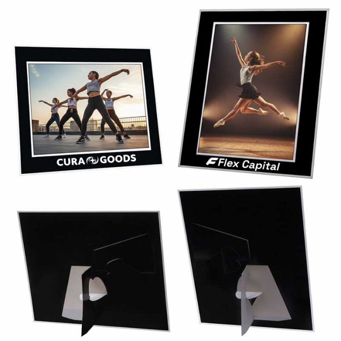 Customized 6x8 Inch Easel Photo Mounts offer a practical and professional way to display photographs at corporate events, trade shows, photography studios, or special on-site photo events. The sturdy cardboard construction keeps photos protected while giving them a clean, polished appearance. Two perforated easels on the back allow recipients to display their images either vertically or horizontally, providing maximum flexibility. The generous imprint area lets you add your company logo or message in one color on one location, creating a lasting promotional impact. These easel mounts are perfect as giveaways, awards, or keepsakes, ensuring your brand remains front and center every time they’re displayed.Looking for more? Explore our collection of picture frames right away.Get free design, free online proofs, and fastest turnaround offers.
