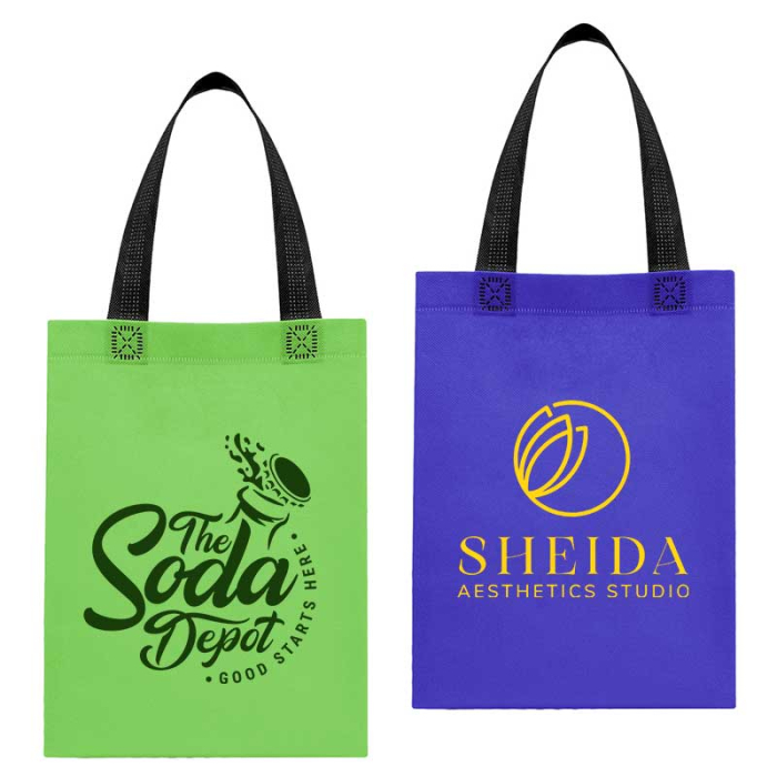 Customized Bennett Recycled Non-Woven Laminated Tote Bag is an eco-conscious, reusable solution for grocery stores, markets, book stores, or everyday errands. Crafted from 80 g non-woven recycled polypropylene with a water-resistant coating, this tote keeps belongings protected while reducing single-use plastic waste. The 6" gusset provides additional storage capacity, and the large main compartment allows easy access to groceries, books, or personal items. With sturdy 18" handles, this lightweight bag is comfortable to carry on the shoulder or by hand. Add your custom imprint to create a functional promotional item that delivers repeated brand exposure while promoting sustainability.Looking for more? Explore our collection of non woven tote bags  right away.Get free design, free online proofs and fastest turnaround offers.