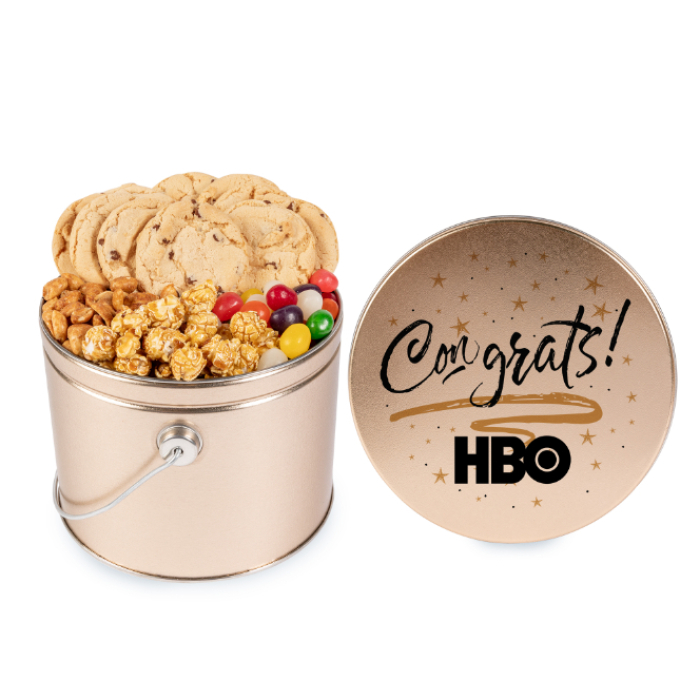 Bring a touch of joy and indulgence with these customizable treat tins. Each tin combines classic flavors that make any occasion special—office gifts, client appreciation, or personal treats. Bright, flavorful, and perfectly packaged, these tins are a ready-to-give gift solution that makes everyone smile.Order these food and candy gifts right away to get free design, free online proofs, and fastest turnaround offers.
