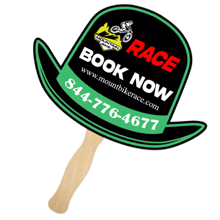 Add a fun twist to your promotions with Customized Lightweight Two Sided Single Paper Derby Hat Shape Hand Fans. These fans offer full color prints on both sides, giving you twice the space to display your logo, message, or event theme. Lightweight yet durable, they’re great for outdoor festivities, especially ones with a fashionable flair. Order these lightweight  hand fans right away to get free design, free online proofs and fastest turnaround offers.