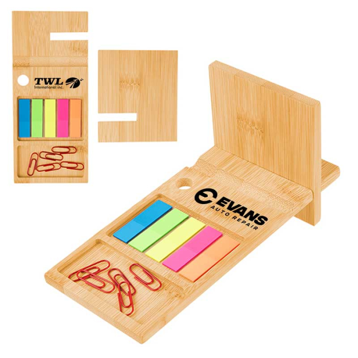 Customized Phone Holder with Sticky Flags is a functional and colorful desk accessory that combines organization with sustainable design. It securely holds a variety of phone sizes, keeping screens visible for hands-free viewing while working or studying. Each holder comes with five neon sticky flags for quick note-taking, a convenient pen hole, and five paper clips for added office efficiency. Crafted from FSC® certified materials, it supports responsible forestry, ensuring your promotional gift is eco-conscious. Compact and lightweight, this desk companion is ideal for corporate giveaways, student promotions, or home offices, offering both practical use and strong brand visibility. A simple, sustainable way to keep your brand front and center every day.Looking for more? Explore our collection of phone holders  right away.Get free design, free online proofs and fastest turnaround offers.