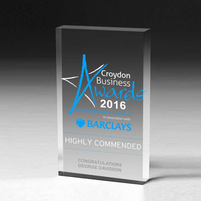 Honor achievements with sleek rectangular acrylic paperweights that combine elegance and functionality.