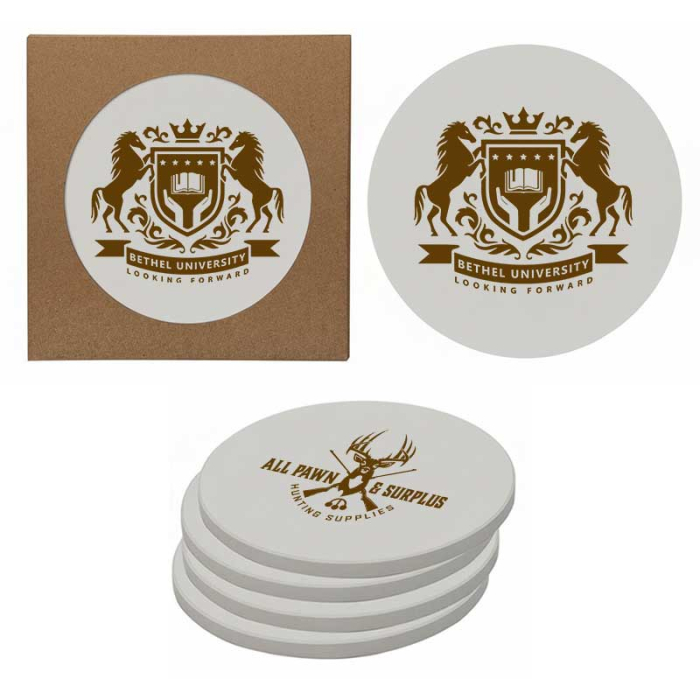 Protect surfaces while promoting your brand.Round absorbent stone coasters that combine functionality with marketing impact.
