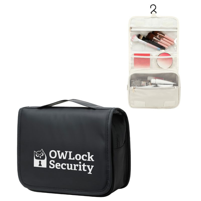 Custom Imprinted Steward Soft Leatherette Toiletry Bag combines sleek design with everyday functionality. Its waterproof soft leatherette exterior is easy to clean and withstands daily use, while the structured shape keeps the bag upright for effortless packing and access. A wide zip opening allows you to reach all your essentials without hassle, and multiple interior mesh pockets help keep items neatly organized. The internal bottle pocket minimizes spills by holding bottles securely in place, and the built‑in hanging hook plus top carry handle make it easy to use in bathrooms, locker rooms, or on the go. This versatile toiletry bag is perfect for travel, gym routines, or weekend trips, and provides a great imprint area for custom branding.Looking for more? Explore our collection of toiletry/cosmetic bags right away.Get free design, free online proofs and fastest turnaround offers.