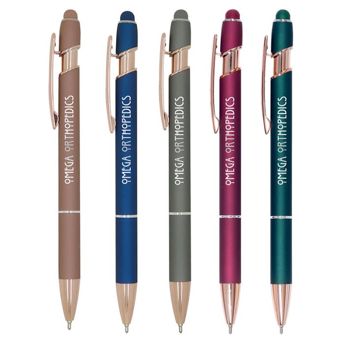 Customized Ultima Rose Gold Accent Stylus Pens are a sophisticated promotional choice designed to showcase your brand with elegance and functionality. Crafted from metal with a sleek rose gold trim, these pens deliver a premium look that stands out in any professional setting. The exclusive Softex™ luster finish provides a smooth, comfortable grip, making the pen ideal for everyday use. Featuring Gel-Glide™ ink in your choice of black or blue, these pens offer a clean, smudge-proof writing experience. The integrated touchscreen stylus adds modern convenience, allowing easy navigation on smartphones and tablets. Perfect for corporate gifts, trade shows, conferences, and executive giveaways, this pen reflects quality and innovation with every use.Looking for more? Explore our collection of stylus pens right away.Get free design, free online proofs and fastest turnaround offers.