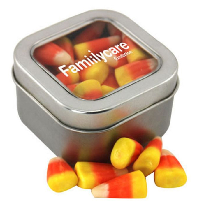 Customized Window Tins with Candy Corn are a festive and eye-catching way to promote your brand during fall and holiday seasons. Each tin features a clear window top that displays the iconic tri-colored candy corn inside, creating instant visual appeal and seasonal charm. The reusable tin keeps your logo visible long after the candy is enjoyed, extending your promotional reach. Bulk packed for convenience, these tins are perfect for trade shows, Halloween events, school functions, autumn festivals, and customer appreciation campaigns. With custom imprinting and a classic seasonal treat, these tins turn every giveaway into a memorable and cheerful brand experience.Looking for more? Explore our collection of hard candy  right away.Get free design, free online proofs and fastest turnaround offers.