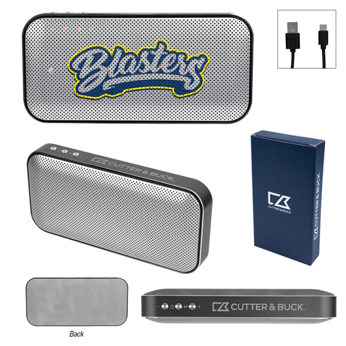 Cutter & Buck® Imprinted Aluminum Suede Speakers and Power Banks combine sleek design, powerful audio, and practical functionality. Featuring high-definition Bluetooth® 5.3, this wireless speaker delivers dynamic stereo sound and supports hands-free calls. Enjoy advanced TWS and Ambient Harmonics technology for immersive audio, while the low temperature smart performance engine ensures safe, reliable operation. The built-in 5,000 mAh lithium polymer battery doubles as a power bank, keeping your devices charged during work, home, or outdoor adventures. With a Type-C input, fast 2-hour charging, and a range of up to 32 feet, this stylish speaker is ideal for giveaways, corporate gifts, or personal use.Looking for more? Explore our collection of gift sets right away.Get free design, free online proofs and fastest turnaround offers.