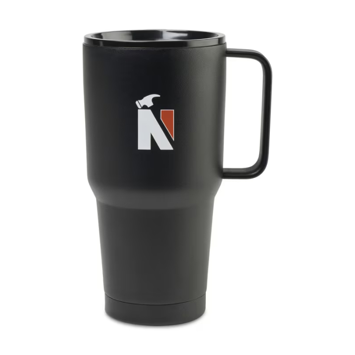 A premium Heritage Supply PRO 27 Oz. Customized Travel Tumbler featuring double-walled vacuum insulation and a sleek, industrial design to keep your logo front and center from the first cup of coffee to the drive home.