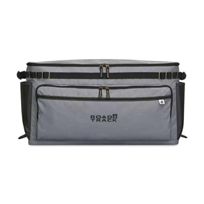 • Hardware: Outfitted with molded comfort grab handles for heavy lifting, a large front organizer pocket, and specialized bottom attachment points to securely tie-down the crate to a roof rack or truck bed.