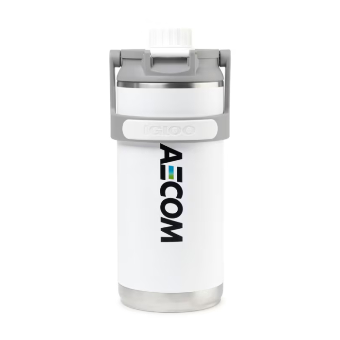 Igloo® 36 Oz Twist ’n’ Chug Bottle is constructed from durable, food‑grade recycled stainless steel with a double‑wall, vacuum‑insulated design and copper lining that helps keep beverages cold for up to 48 hours and hot for up to 6 hours. The threaded, leak‑resistant lid features a wide opening with a chugger cap that opens with just a quarter‑turn, while the swing‑up Tuck Tight™ handle and built‑in coaster add convenience for daily use. At 36 oz capacity, it’s ideal for long workouts, hikes, commutes, and event giveaways — and with your logo or message custom printed on the surface, it’s a promotional item that gets repeated brand exposure. :Looking for more? Explore our collection of plastic water bottles right away.Get free design assistance, free online proofs, and fast turnaround offers.