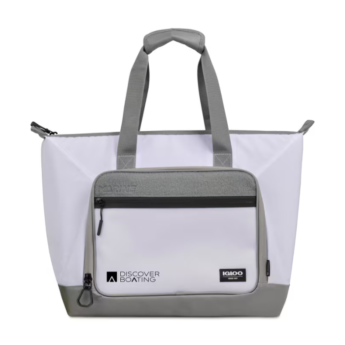 A premium Igloo Customized Marine 30-Can Tote Cooler featuring MaxCold+® insulation and a specialized tech-ready interface to keep your logo front and center at every dock, beach, and boat slip.