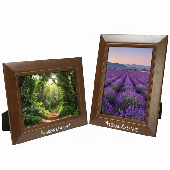Timeless wood. Lasting impressions.A refined frame that showcases memories—and your brand—with style.