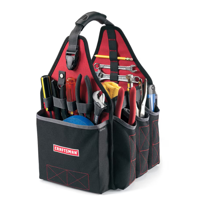 Imprinted All Purpose Utility Tool Totes offer a practical way to keep tools and accessories neatly organized on the job, at home, or during projects. The versatile design features multiple storage areas that help keep frequently used items within easy reach. A metal key fob and exterior clip provide a convenient way to secure a tape measure, helping ensure essential tools stay accessible while working.The side hook and loop pocket includes a plastic container that helps organize small tools, hardware, and accessories. This thoughtful layout makes it easier to keep items separated and easy to find when needed. A molded handle grip provides comfortable carrying, making this utility tote a dependable companion for workshops, maintenance tasks, and everyday tool storage.Looking for more? Explore our collection of tote bags right away.Get free design, free online proofs and fastest turnaround offers.