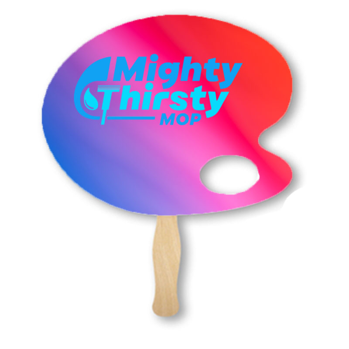 Imprinted Artist Palette Shape Two Sided Single Paper Hand Fans