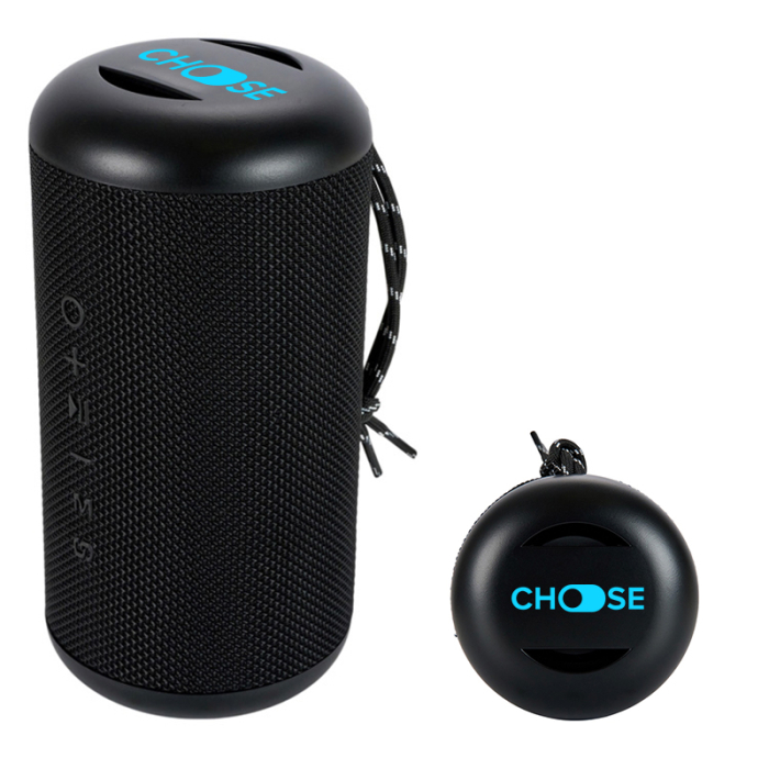 Imprinted Daryl IPX5 7W Wireless Outdoor Speaker delivers high-quality sound in a stylish, compact, and portable package. Its sleek black cylindrical design wrapped in modern fabric complements any indoor or outdoor setting, while the built-in wrist strap makes it easy to carry on the go. With an IPX5 waterproof rating, the Daryl is durable enough to handle splashes or light rain, making it perfect for backyard gatherings, outdoor adventures, or casual indoor use. Equipped with a 1500mAh lithium battery and included USB-C to USB-A charging cable, it offers 3–4 hours of playback per charge. Packaged in a brown gift box, this speaker is a functional and stylish promotional gift that provides dependable wireless audio and keeps your brand top of mind.Looking for more? Explore our collection of Bluetooth & wireless speakers right away.Get free design, free online proofs and fastest turnaround offers.