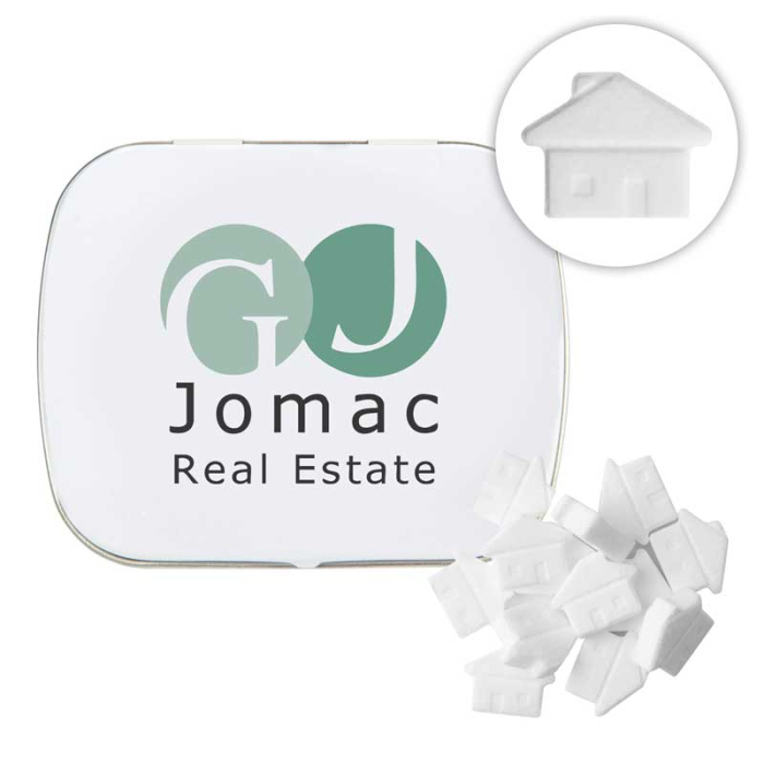 Imprinted Domed Tins with House Shaped Mints