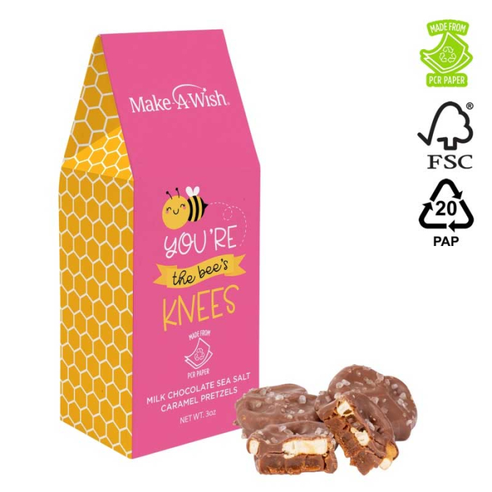 Imprinted Eco Gable Boxes with Sea Salt Caramel Pretzels