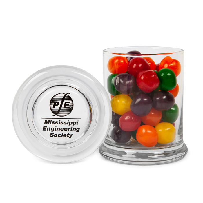 These imprinted glass gourmet jars with assorted fruit sours provide a sweet and memorable way to engage your audience. Each jar can be personalized with your logo or message on the lid, making it a thoughtful and visually appealing giveaway. Ideal for corporate events, tradeshows, employee appreciation, or promotional handouts, these jars combine flavor, functionality, and effective branding. When the candies are gone, the reusable jar can be refilled with new treats, giving your recipients a long-lasting reminder of your brand.Looking for more? Explore our collection of custom soft candy right away.Get free design, free online proofs and fastest turnaround offers.