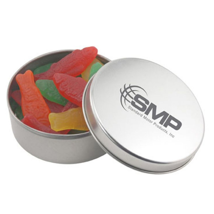 Imprinted Round Tins with Swedish Fish