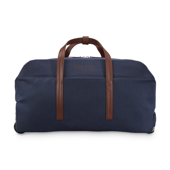 Imprinted Samsonite Virtuosa Wheeled Duffels combine the functionality of a travel duffel with the convenience of wheeled luggage, making them ideal for short trips and business travel. The durable exterior is crafted from a recycled RPET polyester and cotton blend with stylish PU accents, offering a modern look while incorporating more sustainable materials. A spacious interior provides plenty of room for clothing and travel essentials, while exterior pockets help keep smaller items organized and easily accessible. The integrated trolley handle and two-wheel construction allow travelers to roll the bag effortlessly through airports and terminals when loads become heavy. PU carry handles with a snap keeper provide a comfortable grip for quick lifting, and protective bottom feet help keep the bag stable and elevated during use. :Looking for more? Explore our collection of unique and stylish duffel bags  right away.Get free design, free online proofs and fastest turnaround offers.
