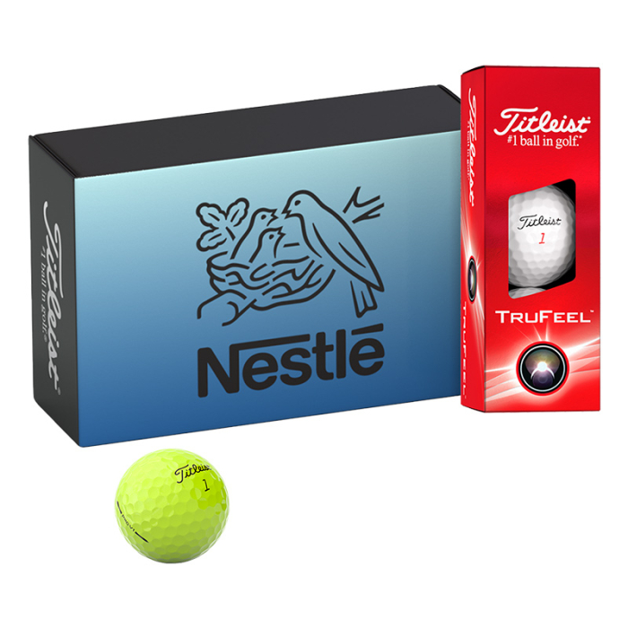 Imprinted Titleist Half Dozen Custom Golf Ball Boxes offer a refined and practical gifting solution for golf events and business promotions. Each set comes standard with Titleist TRUFEEL golf balls, trusted by players who value a soft feel without sacrificing distance or consistency. The large TruTouch core delivers long, dependable shots, while the aerodynamic dimple design promotes a low, penetrating ball flight. A softer 3.0 TruFlex cover adds greenside spin and control where it matters most. Presented in a custom half-dozen box with stock sleeves inside, this premium package is ideal for registration gifts, awards dinners, client appreciation, or executive giveaways—making your brand part of every round.Looking for more? Explore our collection of golf balls right away.Get free design, free online proofs and fastest turnaround offers.