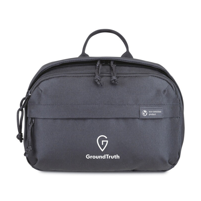 Imprinted Renew AWARE™ Toiletry Bag is a modern, sustainable update to your everyday travel companion. Crafted from recycled materials, it offers durable performance while supporting eco-conscious choices. The front zippered pocket keeps essentials within easy reach, while the spacious main compartment features interior pockets to neatly organize toiletries. A convenient top grab handle makes it easy to carry or pull from luggage. Ideal for travel, gym use, or daily organization, this PVC-free toiletry bag is perfect for promotional giveaways, employee kits, or branded travel programs that value function and sustainability.Looking for more? Explore our collection of toiletry bags right away.Get free design, free online proofs and fastest turnaround offers.