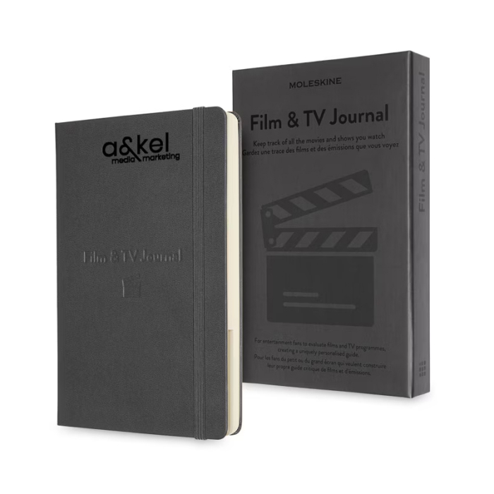 Moleskine® Film & TV Journals allow fans to document their viewing experiences in style. Introductory pages are packed with inspiring content, including film festival listings, a history of cinema milestones, and glossaries of movies, TV, and international directors. The journal is split into three main sections: Watchlist & Favorites, Movies, and TV, letting you track everything from films you plan to see to your favorite actors, documentaries, quotes, and more. Each page can be customized to match your unique viewing preferences, evolving into a personal chronicle of your life through film and television. Dual ribbon bookmarks, a double expandable inner pocket, tabbed sections, and themed stickers ensure both convenience and creative expression. Packaged in a premium Moleskine gift box, this journal makes an ideal gift or promotional item for film and TV aficionados. Track, reflect, and celebrate all the shows and films that have left a mark on your life with this thoughtfully structured journal.Looking for more? Explore our collection of journals & notebooks right away.Get free design, free online proofs and fastest turnaround offers.