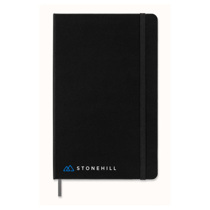 Moleskine® Hard Cover Ruled Large Smart Notebook bridges the gap between analog and digital note-taking. Each page contains invisible Ncodes that allow the Smart Pen (sold separately) to create an instant digital copy of every word and sketch within the Moleskine Notes App, amplifying the benefits of handwriting while keeping your ideas safely backed up. Its large hard cover with rounded corners and elastic closure offers durability and portability, while the ivory-colored, acid-free 100 g/m² paper provides a premium writing experience. With 176 pages (88 sheets), a 180° lie-flat design, and an expandable inner pocket, this notebook is ideal for professionals, creatives, and students who want to seamlessly integrate traditional note-taking with digital convenience. Packaged with a Moleskine retail paper band, shrink-wrapping is available for added protection.Looking for more? Explore our collection of journals &  notebooks right away.Get free design, free online proofs and fastest turnaround offers.