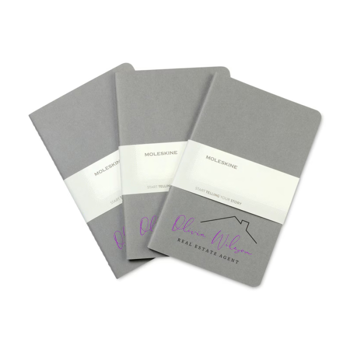 Moleskine® Promotional 3 Pack Large Cahier Journals offers a practical and stylish way to manage your notes, tasks, and projects. Each large journal features durable flexible cardboard covers with rounded corners and visible stitching, providing a professional yet lightweight design. The ruled pages allow for organized writing, brainstorming, and project planning, making them ideal for professionals, students, or anyone who values structure in their work. Shrink-wrapped as a set, these journals make a thoughtful gift or promotional item. FSC®-certified paper ensures an eco-friendly choice, while the PVC-free product design further supports sustainable practices. Keep your ideas, plans, and projects together with this versatile and portable 3-pack of large journals.Looking for more? Explore our collection of journals& notebooks  right away.Get free design, free online proofs and fastest turnaround offers.