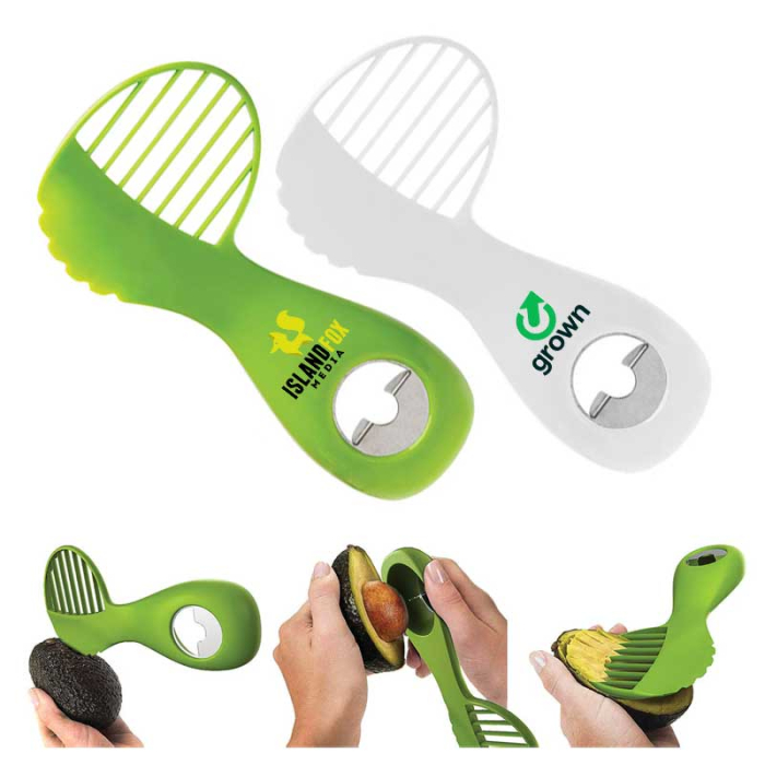 Personalized 3-in-1 Avocado Tools make preparing avocados quick, safe, and effortless. This all-in-one utensil features a serrated plastic blade for splitting avocados without risk of cutting, a pitting tool that removes the seed with a simple twist, and a fan blade slicer to create evenly portioned slices directly from the skin. The ergonomic, non-slip handle provides comfort and precise control, making avocado prep easy for any user. Constructed from FDA-compliant materials and safe for top-rack dishwasher cleaning, this versatile tool is ideal for home kitchens, cooking classes, or promotional giveaways, ensuring daily use and consistent brand exposure.Looking for more? Explore our collection of unique and stylish kitchen accessories right away.Get free design, free online proofs and fastest turnaround offers.