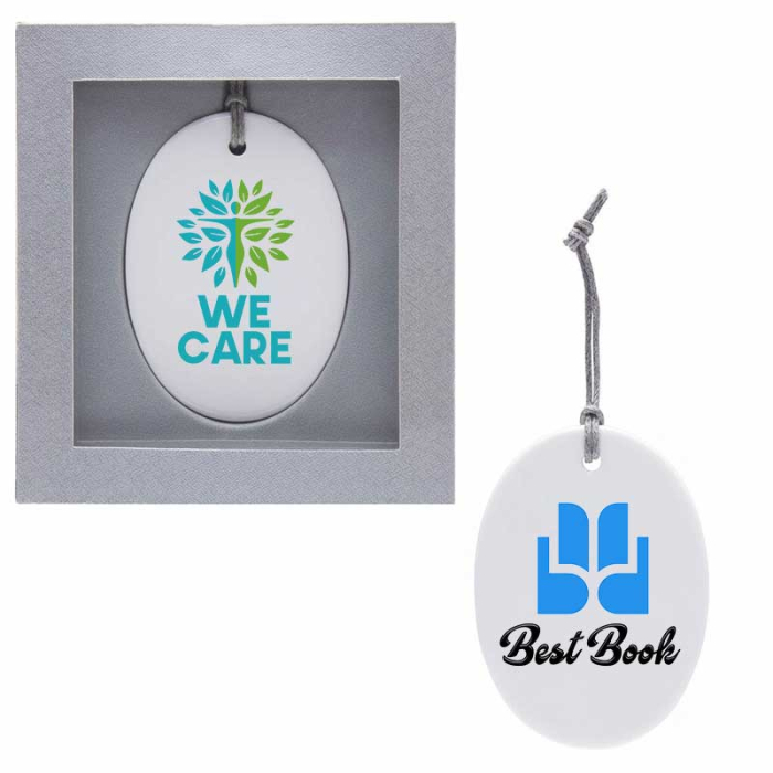 Personalized Ceramic Oval Ornaments offer a beautiful way to celebrate the holiday season while showcasing your brand with elegance. Crafted with a high-quality ceramic glaze, each ornament features a stunning high-gloss finish that enhances any festive display. Available in three charming shapes—round, star, and oval—these ornaments allow you to select the design that best complements your holiday theme or message. Each ornament is carefully packaged in a soft velveteen tray and placed in a shimmering silver box, making it gift-ready and perfect for presentation. Ideal for holiday promotions, corporate gifts, and special events, these ceramic ornaments become cherished keepsakes displayed year after year.Looking for more? Explore our collection of ornaments right away.Get free design, free online proofs and fastest turnaround offers.