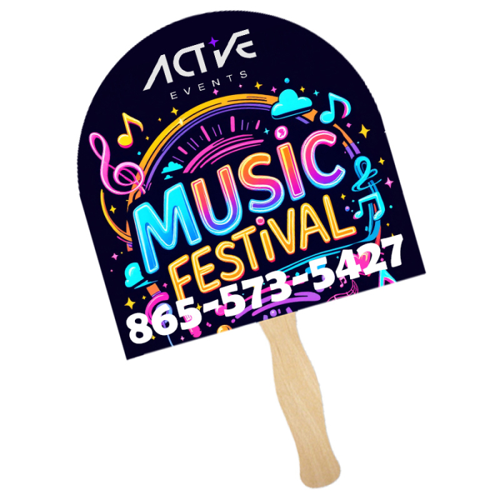 Make your message stand out with these Personalized Lightweight Two Sided Single Paper Arch Shape Hand Fans. Printed in vibrant full color on both sides, these fans combine style and utility. Crafted from lightweight 14 pt. coated stock, they are ideal for churches, weddings, and fundraisers. The curved arch shape enhances your design and keeps audiences cool indoors or outdoors.Order these lightweight  hand fans right away to get free design, free online proofs and fastest turnaround offers.