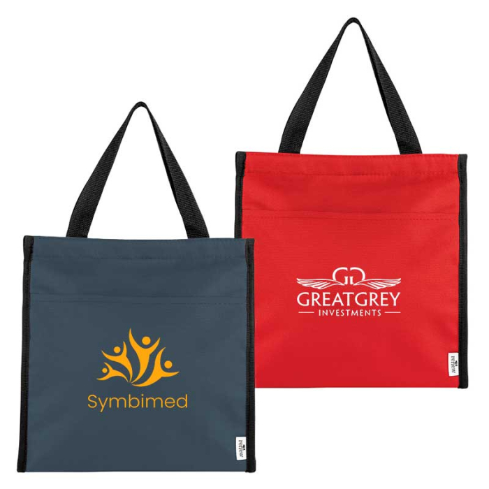 • Made from post-consumer recycled 600D rPET with foil laminated interior lining