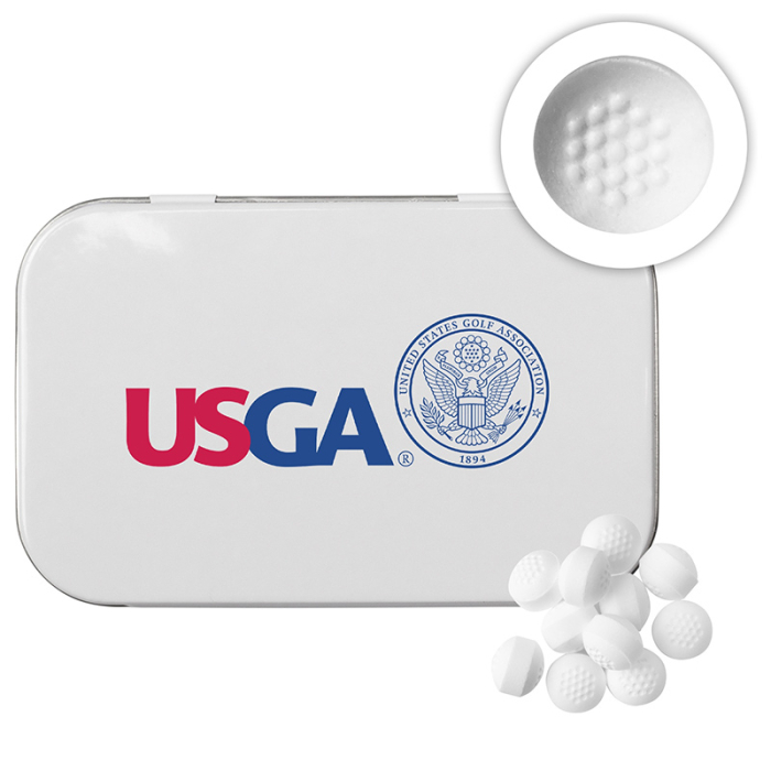 Personalized Rectangular Tins with Golf Ball Shaped Mints