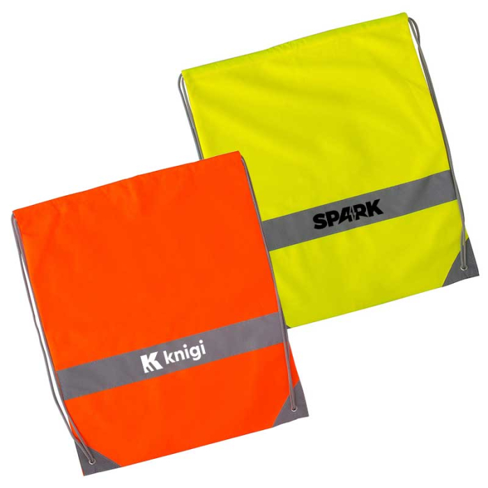 Carry your essentials safely, day or night.These reflective drawstring totes combine lightweight durability with high-visibility safety features.
