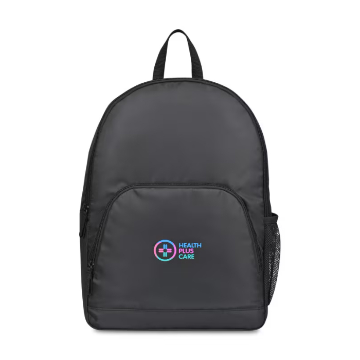 Personalized Repeat Lite Recycled Poly Backpack is a lightweight, eco-conscious upgrade to the classic Repeat backpack. Constructed from recycled fabric and webbing sourced from plastic bottles, this backpack combines sustainability with everyday functionality. The zippered main compartment ensures secure storage for books, electronics, or personal items, while the front zippered pocket and slash pocket provide convenient access to smaller essentials. A side mesh bottle pocket keeps drinks close at hand, and the top grab handle offers an easy carrying option. PVC-free construction emphasizes responsible design, making this backpack perfect for students, commuters, or as a branded promotional gift. Stylish, practical, and environmentally friendly, it’s ideal for everyday use or corporate giveaways.Looking for more? Explore our collection of backpacks right away.Get free design, free online proofs and fastest turnaround offers.