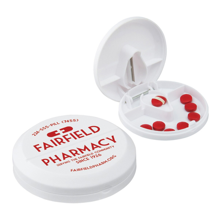 Personalized Round Pill Shaped Pillboxes are a smart and practical solution for staying organized and consistent with daily medications or supplements. Designed in a compact round shape, this pillbox fits easily into pockets, purses, or travel bags, making it perfect for life on the go. The built-in stainless steel pill cutter allows users to safely and accurately split pills in half—simply place the pill inside, close the lid, and cut with ease. This thoughtful design encourages better medication management while reducing mess and guesswork. Ideal for healthcare promotions, pharmacies, wellness programs, and senior care initiatives, this pillbox delivers everyday usefulness while keeping your brand visible and associated with care, convenience, and healthy living.Looking for more? Explore our collection of pill boxes right away.Get free design, free online proofs and fastest turnaround offers.