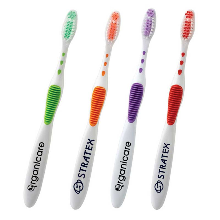 Personalized Toothbrushes with Cap are a compact and travel-friendly promotional item designed to make oral hygiene simple and effective. Soft bristles gently clean teeth while protecting gums and enamel, and the reverse side features a tongue cleaner to ensure fresh breath and complete care. The snap-on cover keeps bristles safe and hygienic, making it convenient for travel, gym bags, or office use. An ergonomic, non-slip handle ensures comfortable handling during brushing. Perfect for dental offices, wellness programs, and corporate giveaways, this toothbrush encourages regular brushing while keeping your logo in front of recipients every day, providing a thoughtful and practical branded gift.Looking for more? Explore our collection of  dental promotional products right away.Get free design, free online proofs and fastest turnaround offers.