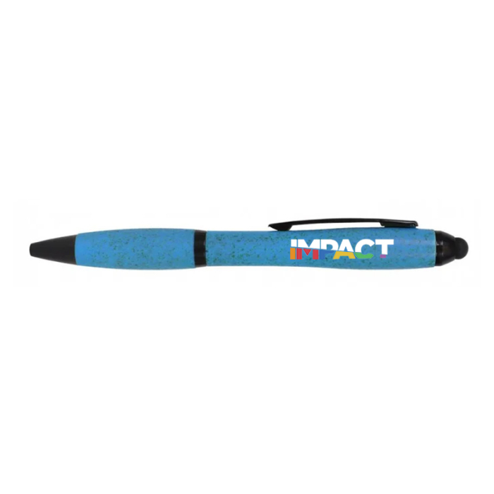 Promote your brand with this eco-friendly Personalized Wheat Straw Stylus Pens made from 70% wheat straw and 30% ABS plastic. Featuring black ink and a stylus tip for touchscreen use, it combines sustainability with everyday functionality—an ideal giveaway for eco-conscious events, offices, or schools.Order these stylus pens  right away to get free design, free online proofs and fastest turnaround offers.