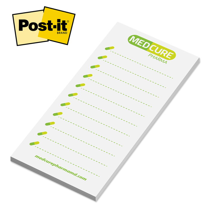 Maximize branding and writing space with Post‑it® Customized 2.75″ × 6″ Notes — ideal for office, school, or event use with ample room for your logo and messaging.