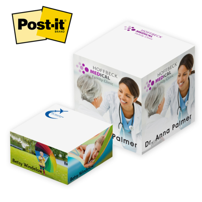Post‑it® Imprinted Half-Cubes offer both practicality and high brand exposure. With the ability to print vivid images and personalized messages on all sides, your brand or promotional message stays in view from any angle. Perfect for offices, trade shows, giveaways, and corporate gifts, these cubes are a fun and versatile way to enhance your branding while providing a functional sticky note solution. Multiple sheet printing options and alternating designs let you get creative with messaging. ([Post‑it® USA](https://promote.3m.com/pl/Post-it-Custom-Printed-Notes-Half-Cube-Looking for more? Explore our collection of memo cubes right away.Get free design, free online proofs and fastest turnaround offers.